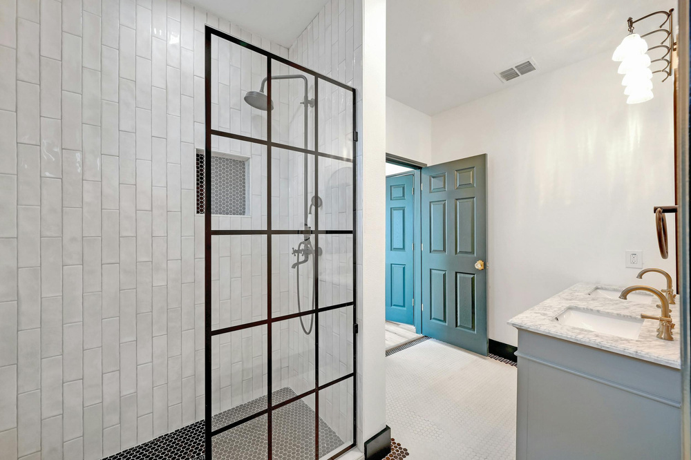 -New shower and tub installed with modern fixtures